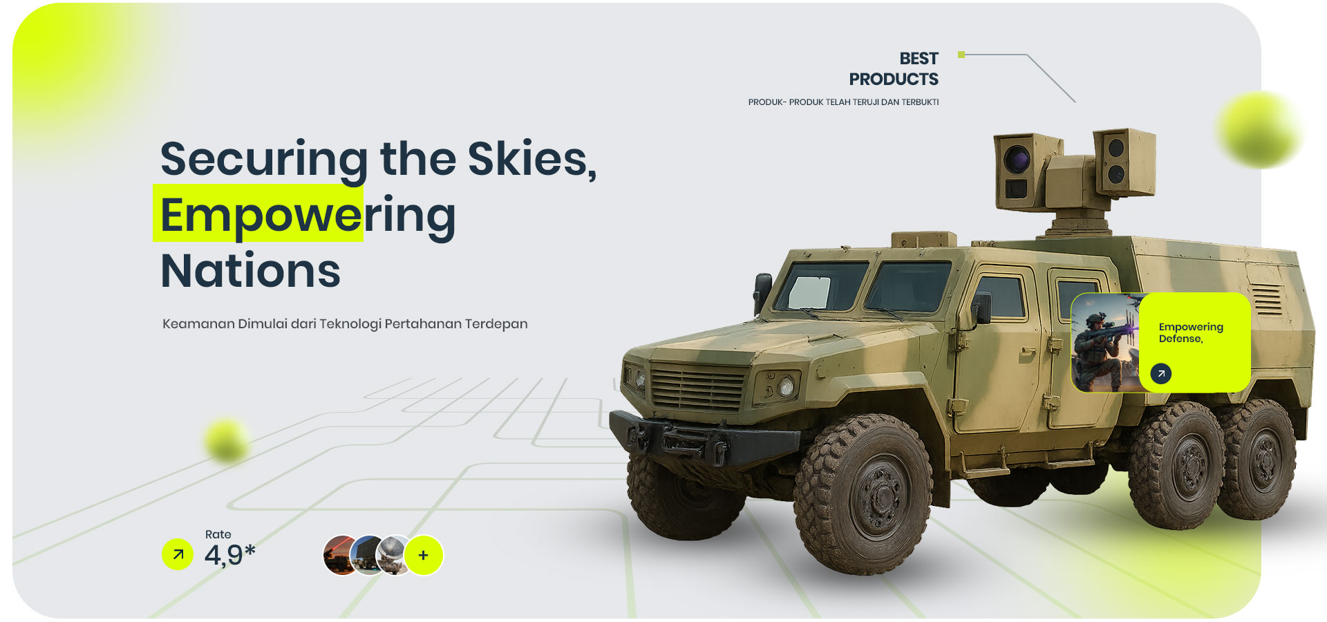 Perusahaan penyedia Alat Utama Sistem Senjata (Alutsista) yang diakui di Indonesia. Dengan dukungan jaringan kemitraan global bersama produsen teknologi pertahanan kelas dunia, kami menghadirkan solusi pertahanan yang mutakhir dan andal.
